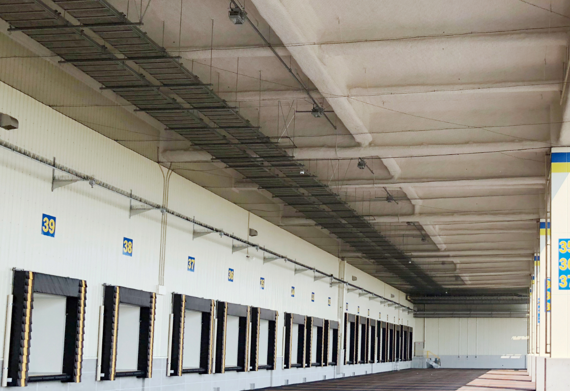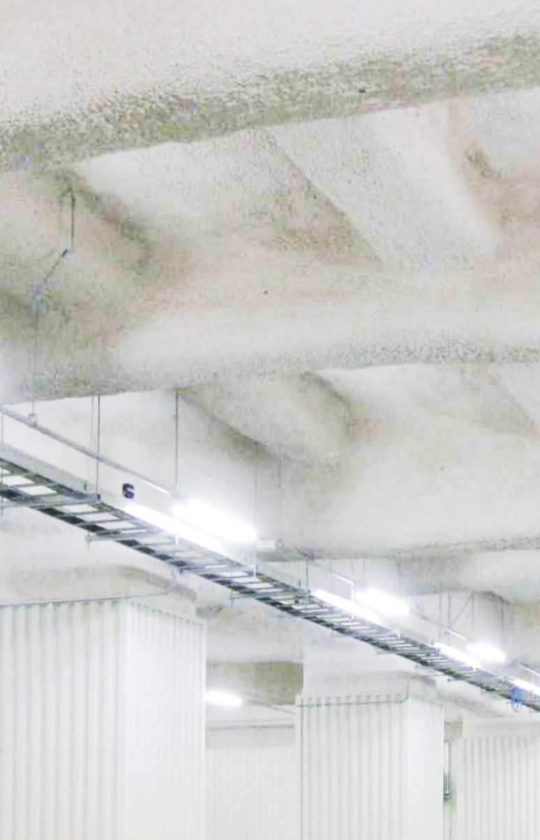 近年、倉庫車路や立体駐車場などにおける、外気に通じる開口部を有する見上げ部分への採用が増えています。一方で毎年発生する台風や豪雨は、頻度が増し、また大型化しており、本来屋内で使用する断熱材への影響が懸念されていました。この度、撥水・吸水防止処理剤「セラミライトシールド」を施す準屋外仕様を新たに設定し、耐水性、耐久性を向上させ、これらのダメージを低減することが可能となりました。